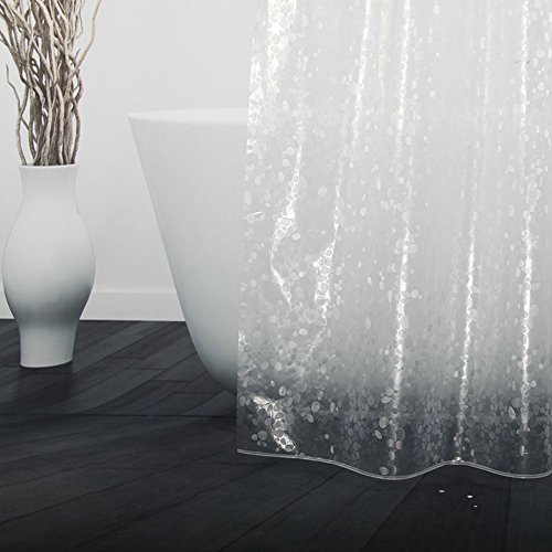 - 【100% PEVA Eco-Friendly Material】: PEVA is non-chlorine, PVC-free, non toxic, odorless, biodegradable material used mostly as a PVC alternative in toy products, baby bibs and shower curtain liner. Many low quality shower curtains on the market are made from PVC, it is a highly carcinogenic compound that emits toxic gas into the air which can last for about 1 month. Our bathroom curtains are made from PEVA, it doesn't expose your family and the environment to harmful chemical fumes.