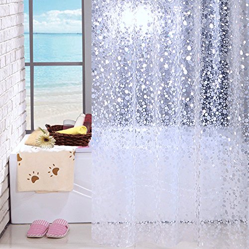 - 【Stamping Process with No Dyes】: the cobblestone pattern was pressed on the shower curtain with chemical free, it has intaglio touching features, and you can feel it with your hands. Morever, the curtain will shine in the light, especially in the mulit-color light, what a romantic decor curtain for door, window, living room