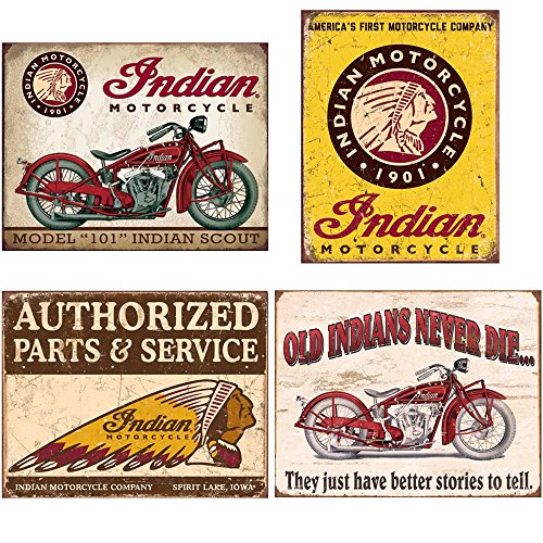 Indian Tin Sign Bundle - Indian Scout, Indian Motorcycles Since 1901, Authorized Indian Parts and Service, Indian - Better Stories
