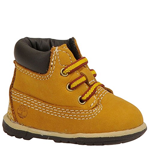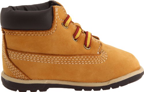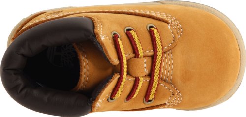 This Timberland 32867 Infants 6 In Crib Bootie Wheat Nubuck features: Premium full-grain leather upper for comfort, durability and long-lasting wear, Fixed bungee laces for easy on/off, Padded collar for a comfortable fit around the ankle, EVA footbed for lightweight cushioning, shock absorption and all-day comfort, Brushed nylon lining and footbed cover for warmth and comfort, and Soft rubber outsole is ideal for early walkers.Feature