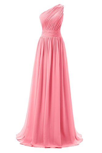 This is a popular one shoulder long dress that you must own! This dress has the perfect balance between high designer fashion and simplicity. Pleated bodice features a classic one shoulder strap. Versatile silhouette can easily be glammed up with accessories, or looks simply stunning on its own! Long mesh skirt adds dimension and movement. Made of high quality chiffon, soft touch, hand wash cold hang dry. Full lined and built-in bra. This beautiful design is appropriate for wedding, formal evening , prom, homecoming, party or any other occasions.