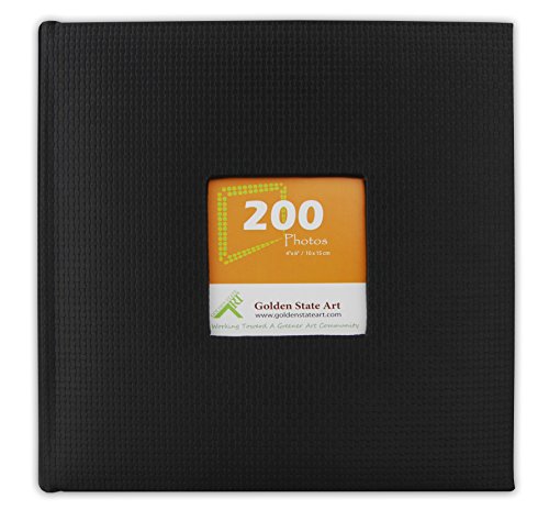 Golden State Art, Photo Album Black Geometric Pattern Embossed Cover, Holds 200 4x6 Pictures