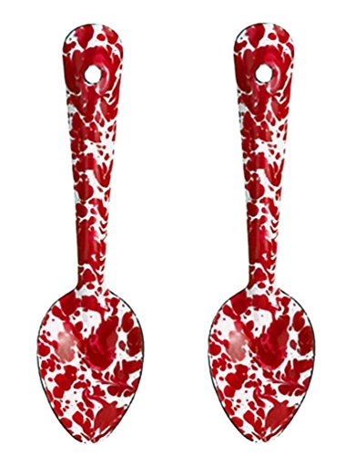 Crow Canyon - Set of 2 Enamelware 6 Inch Serving Spoons (Red Marble)