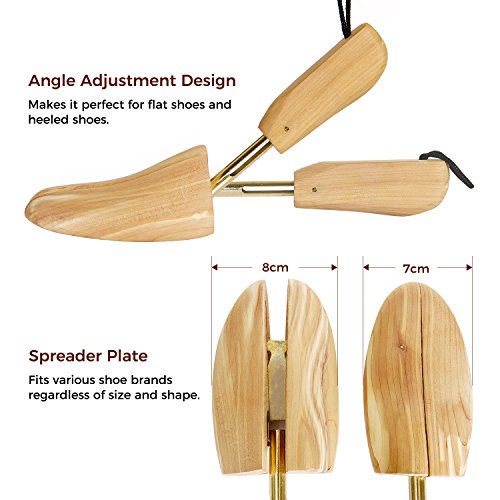 SPECIFICATION Material : Pine ? FEATURES Lifewit Shoe Tree is made of premium pine to ensure long lasting performance. Each shoe tree is equipped with a strap to allow effortless removal. Integrated spring coil centerpiece, angle adjustment design and automatic spreader enable the shoe to fit and support any shoes perfectly to prevents wrinkles and deformation regardless of size and shape. ? PACKAGE CONTENT 1 x Shoe Tree ? 0 |
