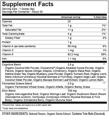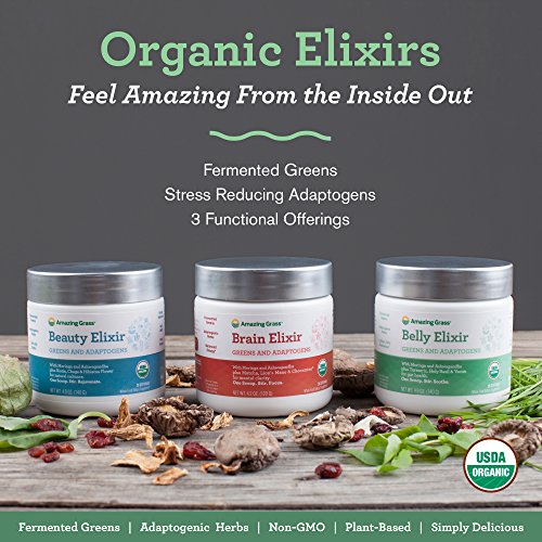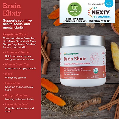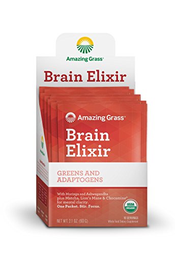 Brain Elixir is a delicious USDA organic powder crafted with organic greens, grown on our family farm in Kansas, and blended with stress reducing adaptogenic herbs plus pioneering functional ingredients to help support cognitive health, concentration & mental clarity. At Amazing Grass our roots run deep...Back to our family farm in Kansas, where for over 3 generations we’ve organically grown & harvested the most nutrient-dense greens on earth. Today, we thoughtfully craft our greens with the highest quality, plant-based ingredients curated from like-minded farmers from around the world. Amazing Grass products are a delicious way to nourish your body with the whole food nutrition it needs to feel amazing every day.Feature