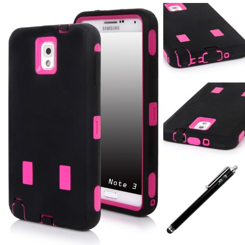 E LV High Impact Resistant Hybrid Dual Layer Armor Defender Plastic with Soft Silicon Shock-Absorption Full Body Protective Case for Samsung Galaxy Note 3 N7200 N9000 - Black