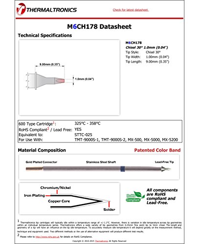Thermaltronics M6CH178 Chisel 30deg 1.0mm (0.04") interchangeable for Metcal STTC-025