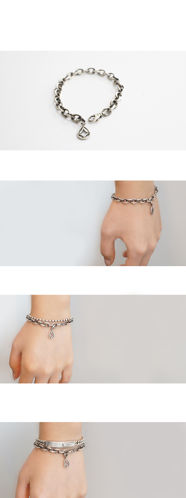 -물방울 모티브의 참이 포인트가 되는 세련된 디자인의 체인팔찌입니다.