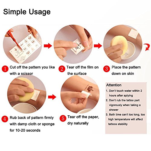 - Easy to apply and remove: Just wet with damp cloth, tattoos can be applied to the skin immediately, remove easily with baby oil or face cream
