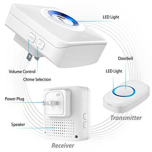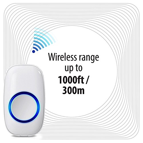 Fosmon WaveLink 51008HOM Wireless Doorbell (Operating Range - 300M/1,000FT | 52 Chime Tunes | 4 Volume Levels | LED Indicators) - 2 Remote Button, 1 Plugin Receiver