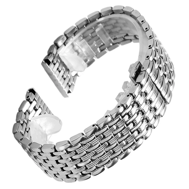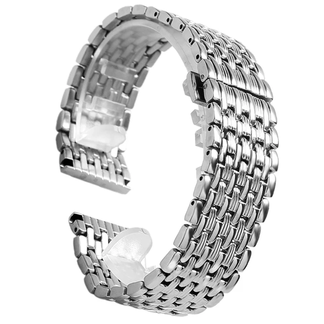 22 미리메터 실버 손목 시계 스테인레스 스틸 시계 밴드 스트랩 팔찌 팔찌 배포 버클 푸시 버튼 + 2 봄 바