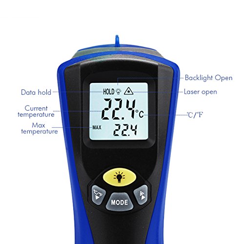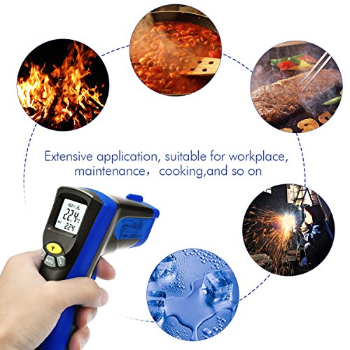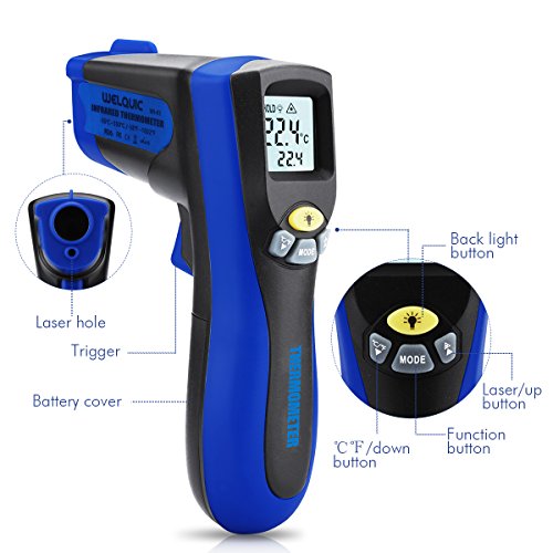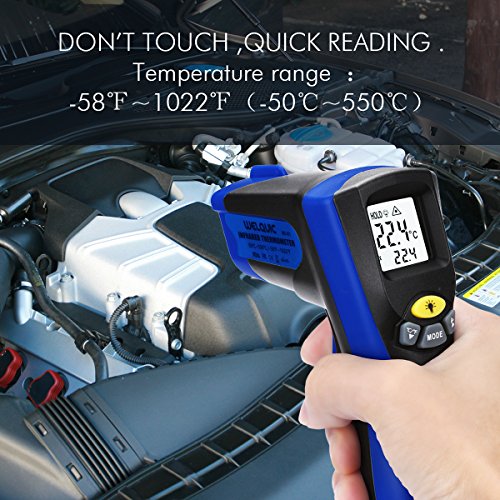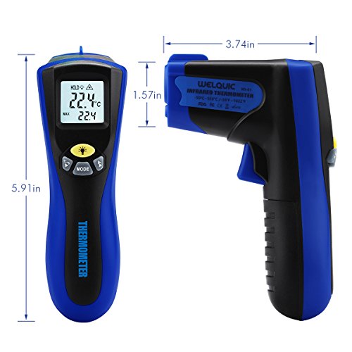 WELQUIC Non-contact Digital Laser Infrared Thermometer Temperature Gun Dual Laser Beam Pointer LCD Backlight -58 to 1022 °F (-50 to 550°C), Black and Blue