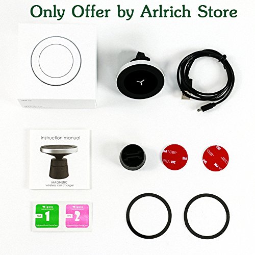 Magnetic QI Wireless Car Charger Mount is an outstanding upgraded new version phone holder comparing the similar products on the market. including: -QI Wireless charger -Magnetic connection -Support Air vent/dashboard Specifications Material: ABS Magnet Aluminum Silicone Input: 5V / 1.5A Output: DC5V / 1A Charging distance: < 2 mm Charging efficiency: ≥ 74% Interface: Micro USB port Cable length: 3.28ft / 1m LED indicator: Green or Blue Tips: * Since most of cell phone do not have enough magnetic force to hold itself. The magnetic charger comes with metal rings helping to strengthen magnet,and we suggest you to use a slim phone case less than 2mm. in order to extending metal ring life, we suggest you stick the metal ring on the center ofcase inside. if you don't like the metal ring and phone directly attached together, you can put a piece paper between your phone and phone case. * Please use an AC Adapter with real 1.5A output.The input of the wireless charger is DC 5V/1.5A,insufficient input current may cause unstable charging.Generally speaking it can not connect to Laptop USB, since it output current is lower than 1A, it may cause slow charging or stop charging. * For new brand iphone X /iphone 8 /iphone 8plus, we highly suggest you stick the metal rings on the phone case inside rather than stick on phone directly, due to the phone special glass back need special glue to stick-on. 0