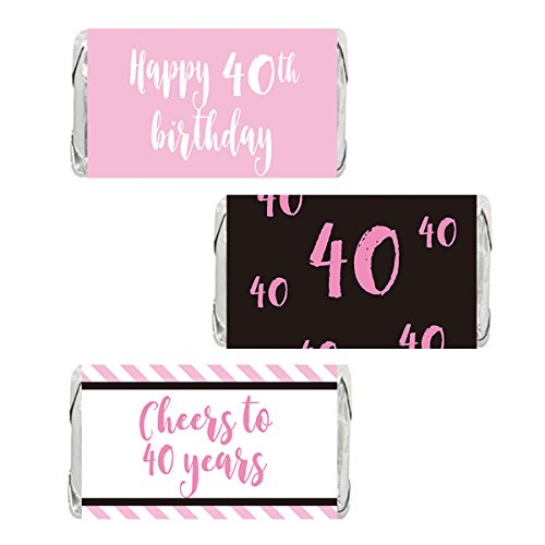 Gold 40th Birthday Miniatures Candy Bar Wrapper Stickers, Party Favor Labels, 54 Count