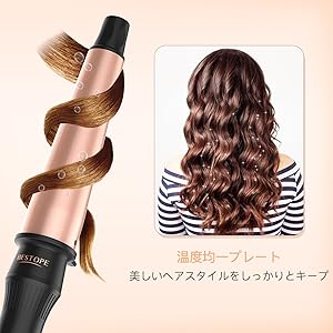 【誤作動防止機能】:電源スイッチを長押すと、offになります。 【スイベルコード 】 ねじれや絡まりを防ぐ、使いやすい回転式コードです。2m電源コードがありますが、家でも美容室でも使えます。 【スキッド抵抗チップ】 操作性を考慮し、滑りにくいフィンガーリムを採用して、、先端の設計を改良しました。使い時で、左手は先端を掴み、とても便利なので、初心者でも上手になります。 |