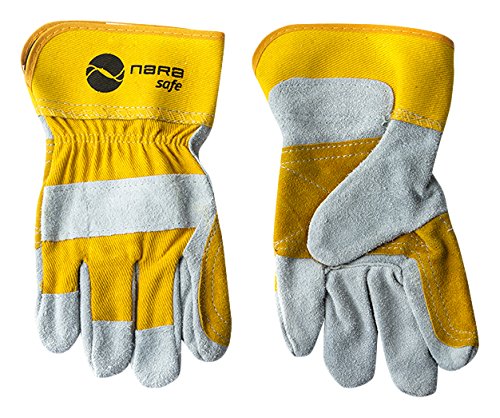 Nara Safe Safety Work Gloves and Cuff, Cow Split Leather/Drill with Double Palm, Reinforced, 3 Pairs