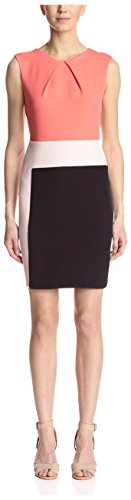 Product DescriptionSleeveless sheath dress with modern colorblocking and pleat details0