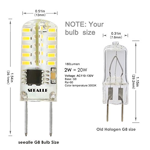 G8 LED Bulb Dimmable Seealle 2W Replace 20W Halogen G8 Bulb Warm White 3000K for Cabinet Puck Lighting Under Counter Kitchen Lighting G8 Bi-Pin Base AC110-130V (Pack of 8)