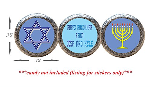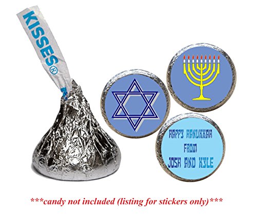 Chanukkah Holiday Stickers for the bottom of chocolate Kisses, Personalized (set of 108)(RYelMen)