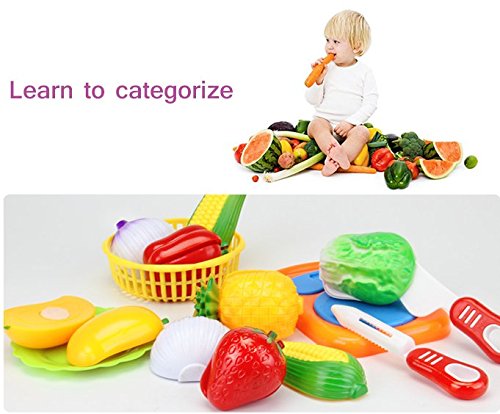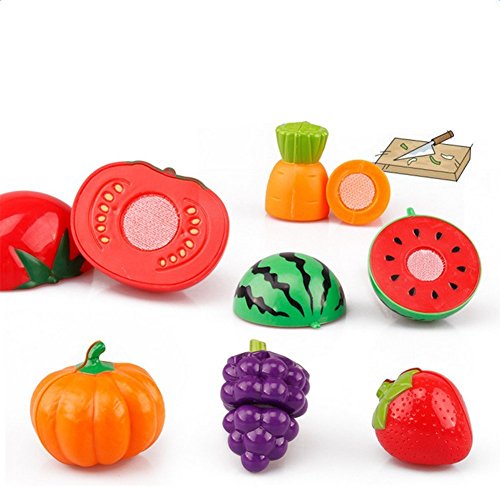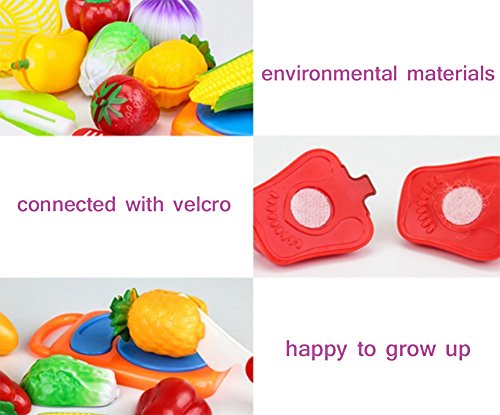 -. Feature : ❤️Have more funs:12Pcs pretend cutting toys playset / ❤️Safety Quality Control: Made of safe and environmental materials, round edge design will provide maximum security for your kids / ❤️Social Skills: The basics of communication, cooperation, and collaboration; encourages trust, friendship, and language development / ❤️Imagination Creativity:Help develop child's mind, creativity and thinking ability and train their hand-eye-coordination and hand flexibility by their own operation / ❤️Kitchen pretend play food fruit set for kids above 3 years old