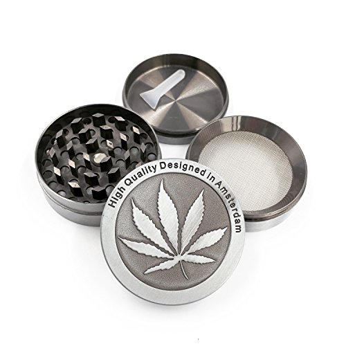 Tobacco Herb Grinder 4-Stage - Leaf Designed on Top - 2.05" in diameter by SMOKPIPE
