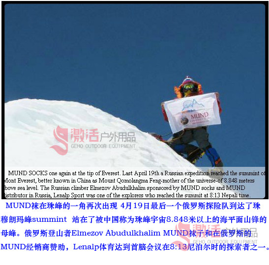 ?Mund was founded in 1989 in the Spanish city of Burgos (Burgos) specializes in the development of outdoor sports and special socks. All Mund products must go through a rigorous examination of Burgos was sent to the world. Mund brand mainly produces various series of socks football, cycling, fishing, horse riding, military, leisure and extreme sports such as cross, but Mund also give Spanish football clubs and national supply of professional climbers learn mountaineering socks and development of extreme sports products, by outdoor sports with special needs in the professional field of Mund chosen more specialized materials include Coolmax, Thermolite, Lycra, Condura, Outlast, RHOVYL Laine RHOVYL Coton, Merino Wool, Cold Fibre, X-static and other well-known materials. About Mund brand's unique design and selection of materials to consumers really enjoy a sense of security and comfort.