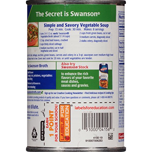 Crafted with farm-grown vegetables that were picked at the peak of freshness^100% natural, 99% fat free, gluten-free, vegetarian^No MSG added*, no preservatives or artificial flavors*Except for a small amount of glutamate that naturally occurs in yeast extract^Use to add flavor to soups, rice, potatoes, vegetables and stuffing. For recipe ideas, visit SwansonBroth.com^Packaged in a recyclable steel can