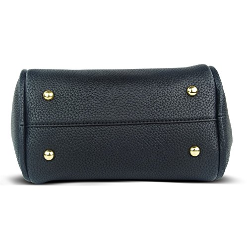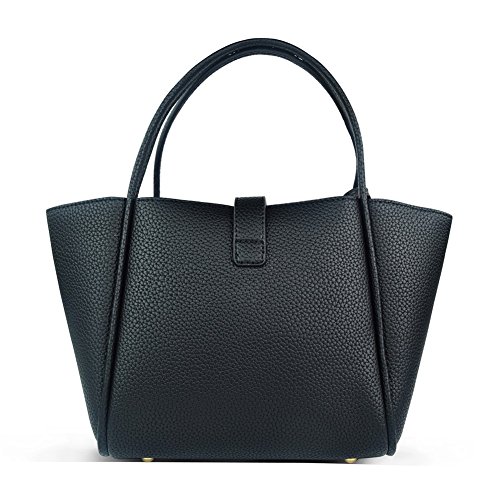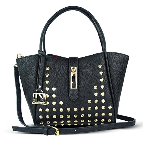 -. Feature : Material: High Quality PU Leather, inside: Polyester / Size: 12.6"(top length)8.27" bottom length* 8.26" H* 7.98" W / Inside structure:Handbag with a small pouch inside, Look not large but big capacity, can hold many daily use items like wallet, Pad, umbrella, mobile, cosmetics. / Simple design with fashion rivet, match for any seasons, and any occasion. / Multi-function Designer Bag, Can be used as top-handle bag, shoulder bag, crossbody bag. With a removable and adjustable strap