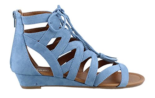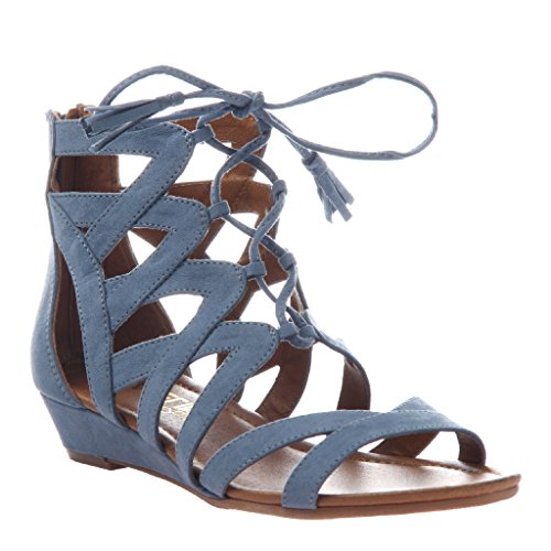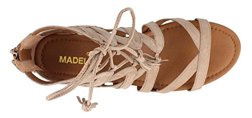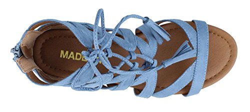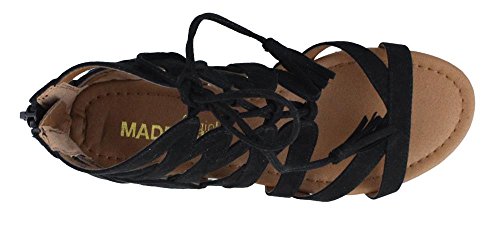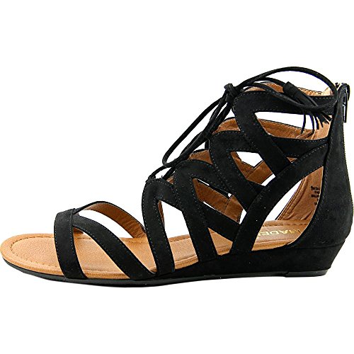 Studio : MADELINE GIRL Publisher : MADELINE GIRL Binding : Apparel Product Description Women's Madeline Girl, Saturate Gladiator Sandals Saturate your look in fun fashion! Fabric upper Front lace up closure for a secure fit with easy entry back zipper Fabric lining Lightly padded footbed for added comfort 1 inch wedge heel Manmade outsole. Heel Height of 1.00 inches 0