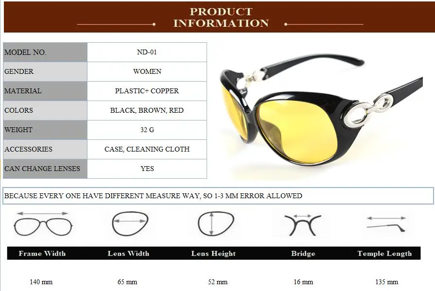 Item Name:Women Night Driving Glasses Driver Sunglasses Night Goggles