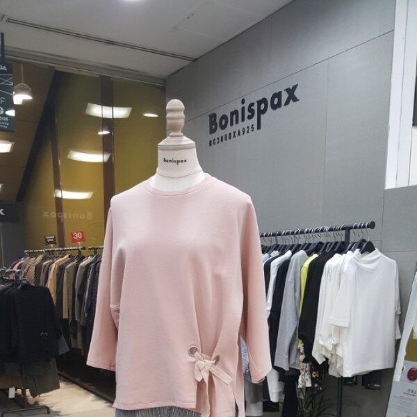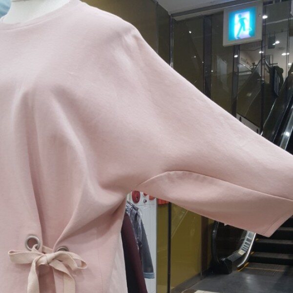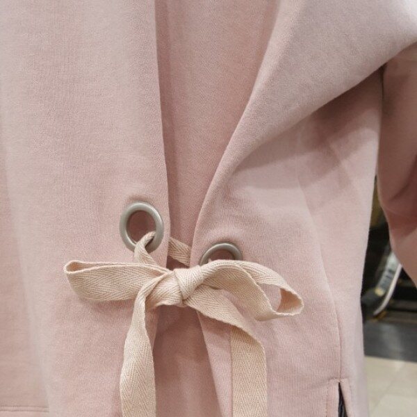 과하지않은 박시한 핏이 체형커버에 굿!!! 엉덩이 살짝 덮는 뒷길이며좌측하단에 리본장식이 귀여워요~~