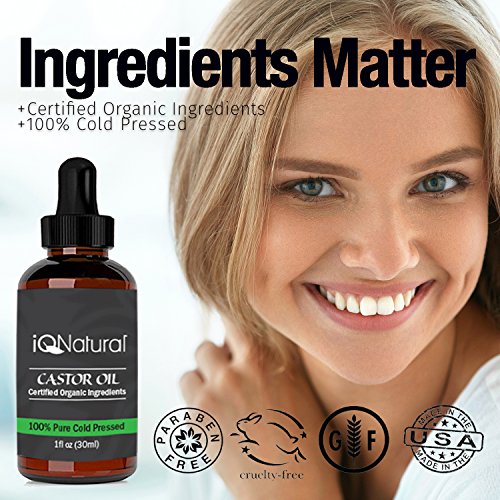 - USDA CERTIFIED ORGANIC QUALITY: Virgin cold-pressed, USDA Certified Organic and hexane-free. iQ Natural Castor Oil contains all the natural botanicals that release from the castor seed during the gentle extraction process. Bottled in dark amber glass with glass dropper to protect the nutrient-rich complex containing one of the highest known concentrations of essential fatty acids, vitamins, and minerals.