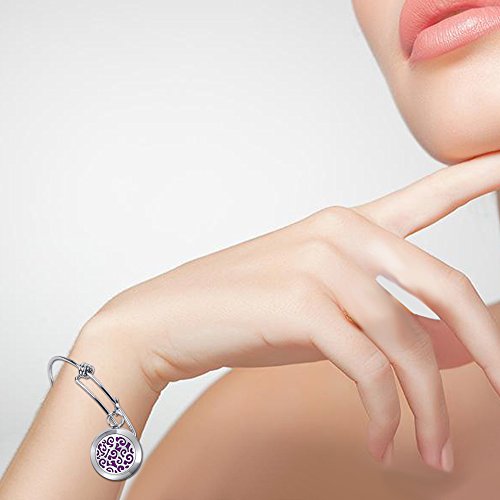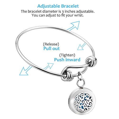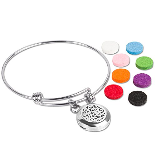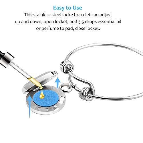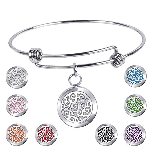 ROMANDA Stainless Steel Essential Oil and Perfume Diffuser Locket Bracelet, Aromatherapy Charm Locket Bangle with 8 PCS Color Pads