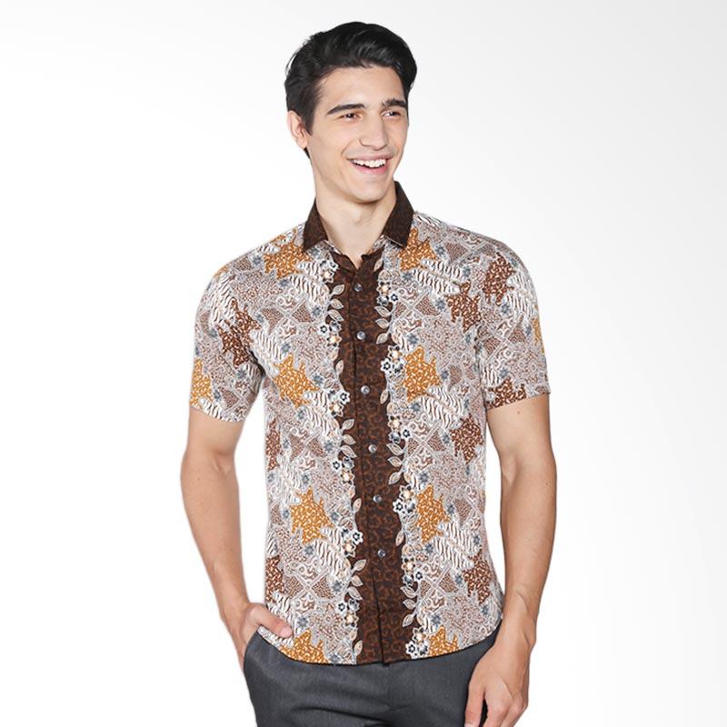 VM Slimfit Casual B-154 Kemeja Batik Pria - Coklat