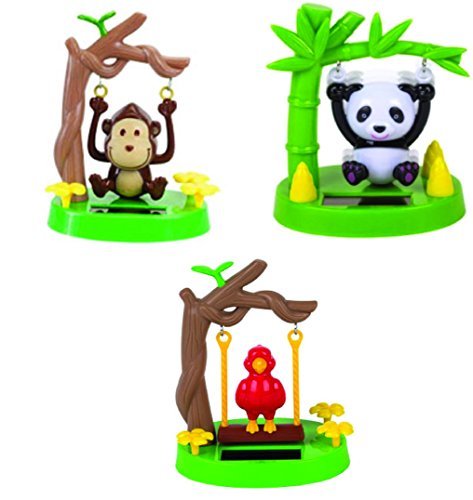 -. Binding : Toy -. Brand : Greenbriar -. EAN : 0700786036926 -. Feature : 3 Solar powered toys, swinging monkey, swinging panda, and swinging parrot / Each is 4 inches x 3.5 inches / Great to give as a gift / They will swing when you put them in the window under a bright sunlight / No batteries needed -. IsAdultProduct : 0 -. Label : Greenbriar -. Manufacturer : Greenbriar -. MPN : na -. PackageQuantity : 3 -. PartNumber : na -. ProductGroup : Toy -. ProductTypeName : TOYS_AND_GAMES -. Publisher : Greenbriar -. Studio : Greenbriar -. Title : Solar Toys Swinging Monkey Swinging Panda and Swinging Parrot Bundle Gift Box (Pack of 3) by Greenbriar -. UPC : 787799105771