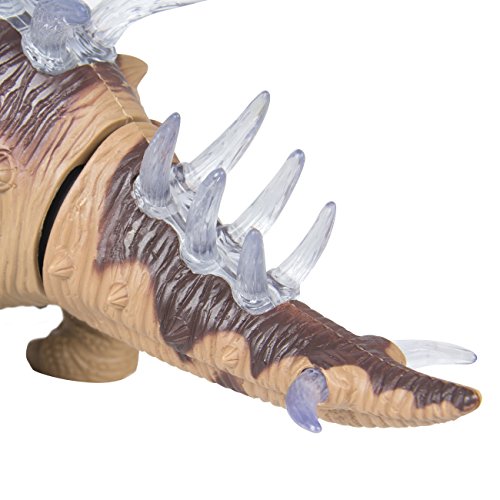 -. Feature : Interactive multi-colored lights & sounds keep kids entertained for hours / Moves just like a real Stegosaurus on its own / Made from sturdy non-toxic recyclable ABS plastic / 3 AA batteries required (not included) / Product Dimensions:14"x4"x6"