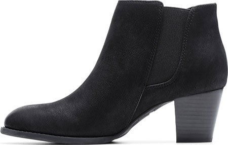 -. Feature : Outside zipper entry / Elasticized outside goring panel / Suede or leather upper / Stacked-look heel / Rubber outsole
