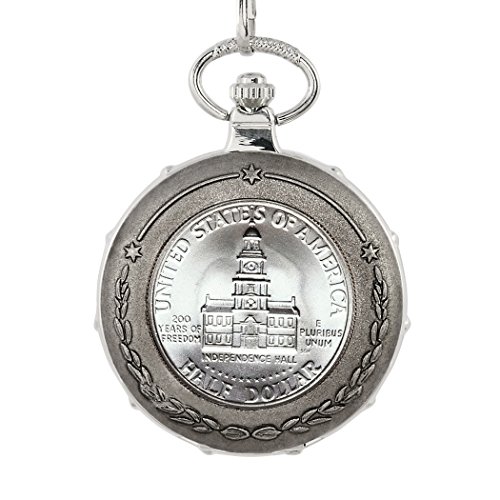 -. Title : JFK Bicentennial Half Dollar Silvertone Train Pocket Watch