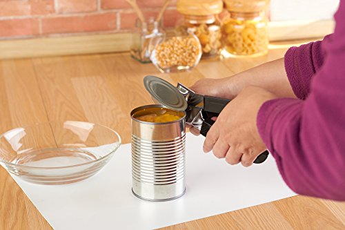 EFFORTLESSLY OPENS CANS The easy to turn non-slip turning knob makes it so that anyone can use this can opener. This classic can opener design has opened millions of cans and will continue to do so at a great price. The ergonomic non-slip handle allows for smooth cutting when opening cans without the hand slipping, it is great for seniors because it cuts so easily.