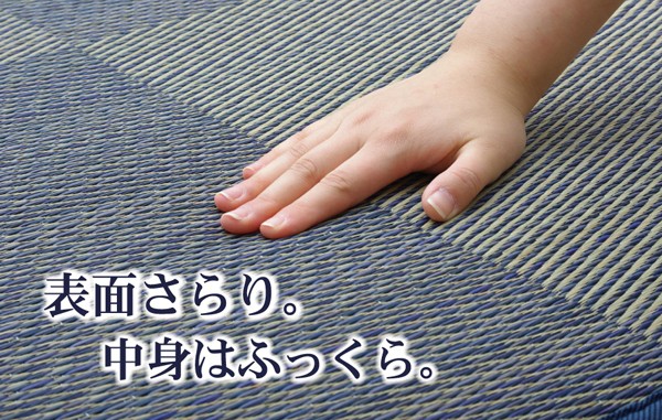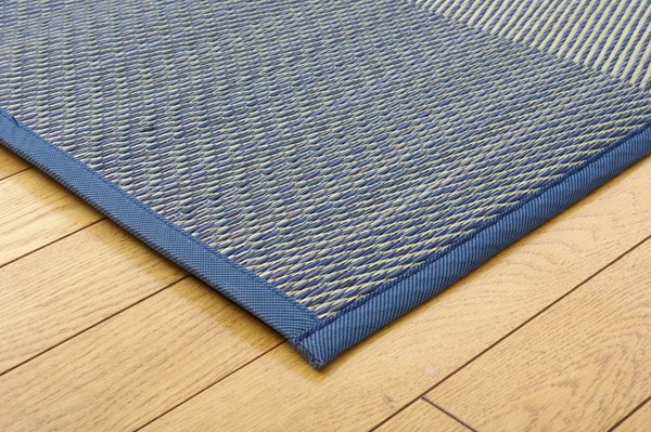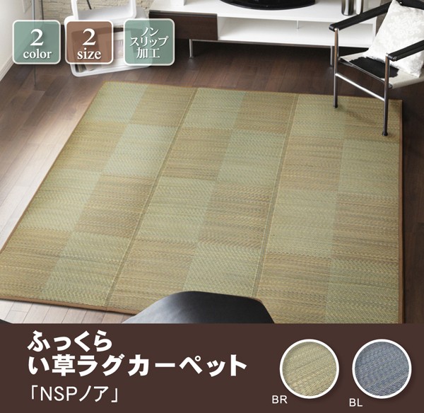 【商品名】格子柄 ふっくらボリューム い草ラグカーペット 『NSPノア』 ブルー 200×200cm (裏:滑りにくい加工)