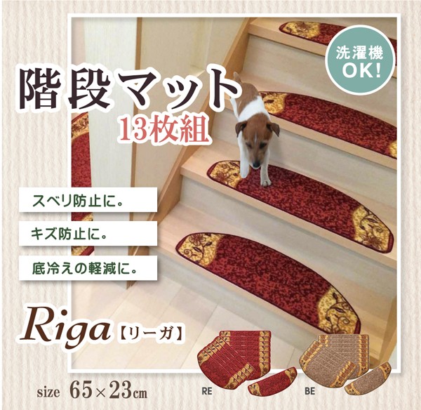 【商品名】階段マット 滑り止めマット 洗える 王朝柄 『リーガ』 ベージュ 約65×23cm 15枚組 滑りにくい加工