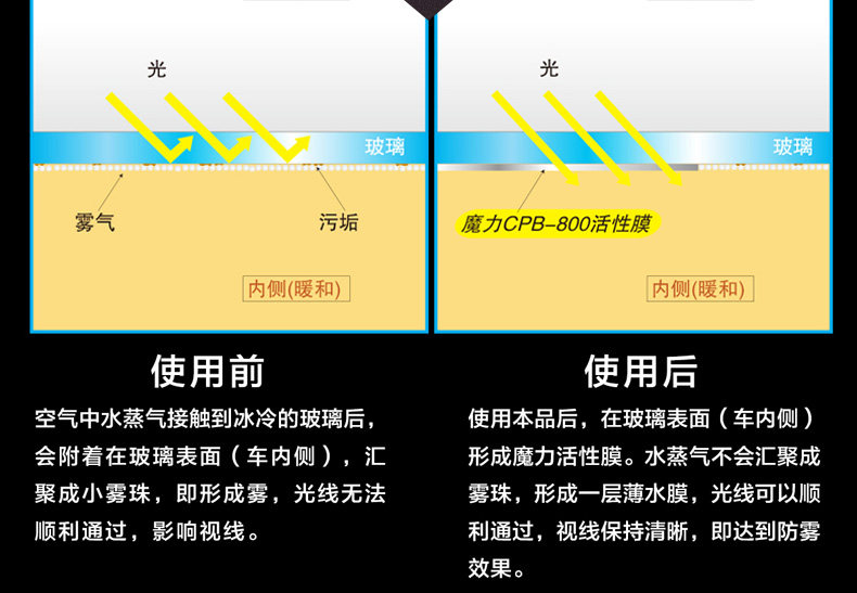 新一代 有机活性剂 瞬间除雾 操作方便 干净持久