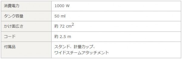 | 付属品 | スタンド、計量カップ、ワイドスチームアタッチメント、取扱説明書(保証書付き、保証期間:1年間) |