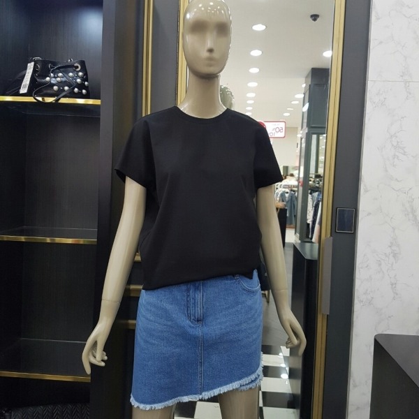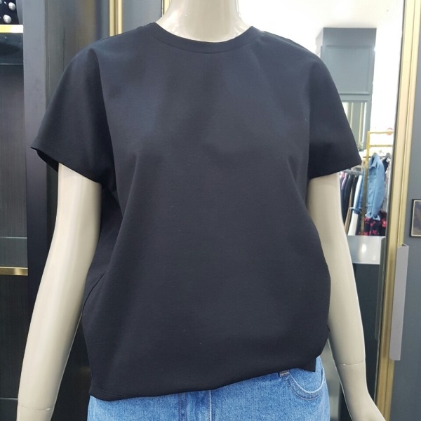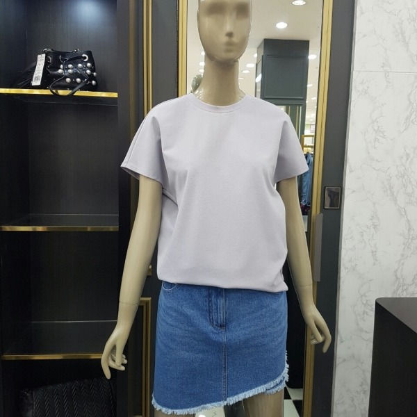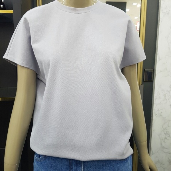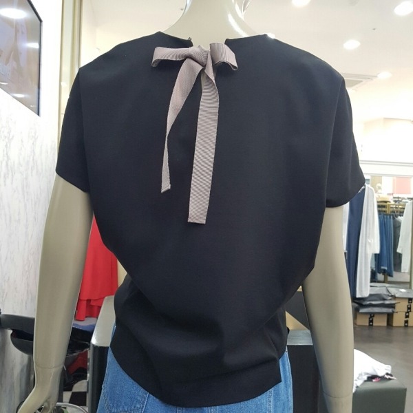 라운드 나그랑 반팔 티셔츠로 뒷목 선에 리본 장식이 있어 귀여워 보이는 티셔츠입니다