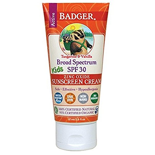 -. Title : Badger Company, Active Kids, Zinc Oxide Sunscreen Cream, SPF 30, Tangerine & Vanilla, 2.9 fl oz (87 ml)