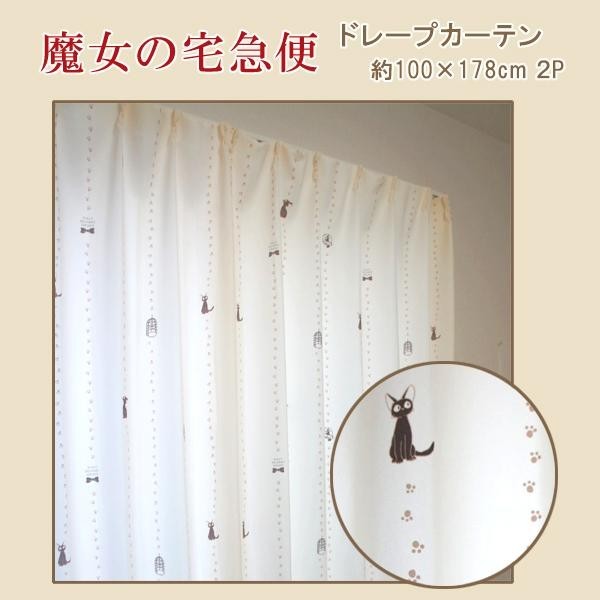 | アイボリーのシンプルなデザインでどんな部屋にも合わせやすい。ドットに見える模様はジジの足あとになっています。ドレープカーテンとは、厚手のカーテンで、通常室内側のカーテンに用いられます。※遮光カーテンではありませんのでご注意ください。 |