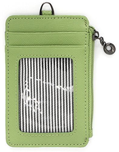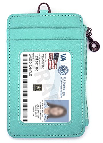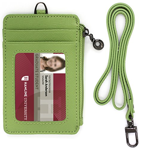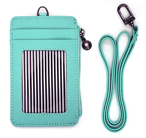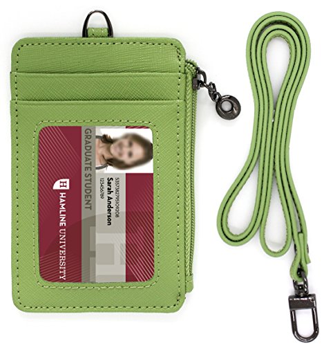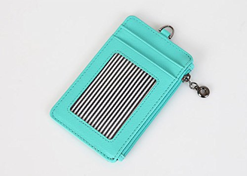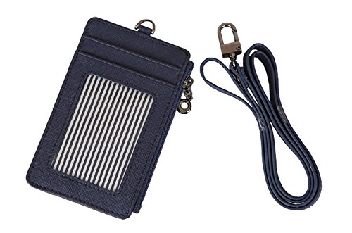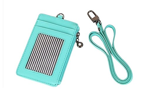 ID Window Card Badge Holder Leather Wallet Zip Pocket Neck Detachable Strap Landyard Money