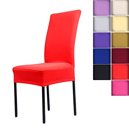 SHZONS™Universal Stretch Spandex Removable Washable Short Dining Chair Cover Protector Seat Solid Slipcovers for Hotel,Dining Room,Ceremony,etc.(Red)
