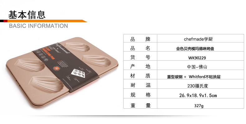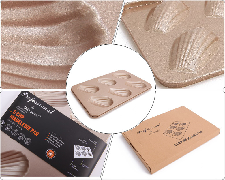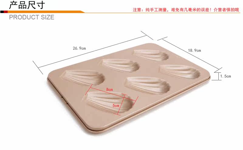 烘焙模具香槟金色6连杯不粘玛德琳贝壳蛋糕模具烤盘