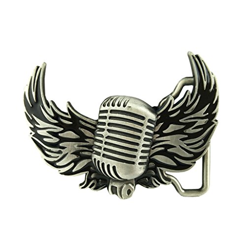 Description: - Unique Antique Silver 3D Microphone Flying Wings Design - Vintage Western Country Music Style Cowboy Belt Buckle Fashion Jeans Accessories for Boys Men - Music Rock Style Belt Buckle will fit any suitable belt Width up to 1.5"(39mm) - Material: Zinc Alloy, high quality finished and hardness - Buckle Size: approx. 8.9 x 6.8cm/3.50 x 2.67inch Package Includes: 1 Piece Belt Buckle